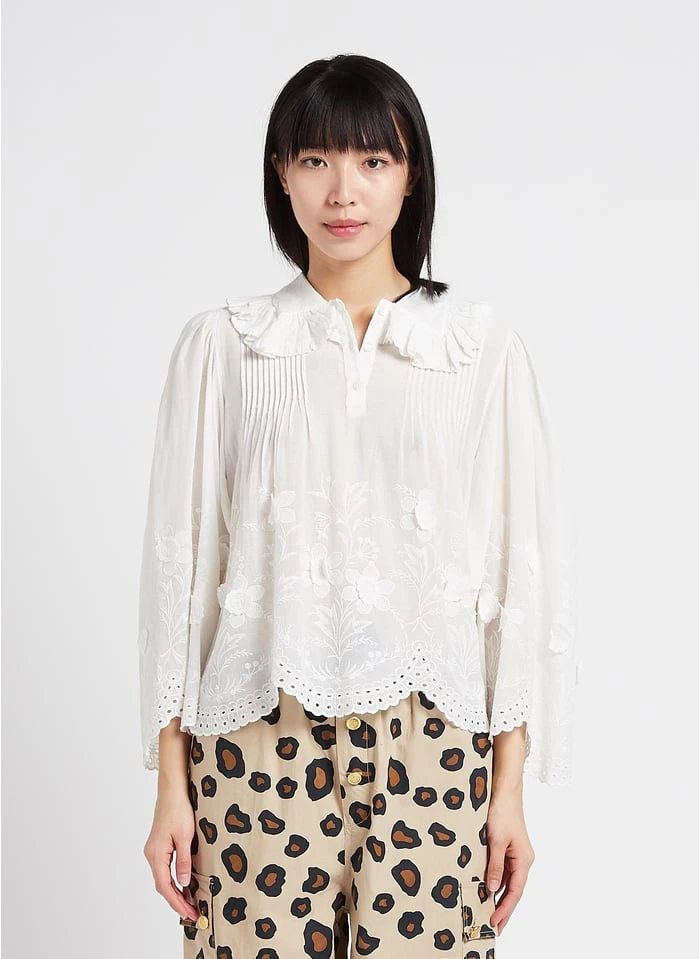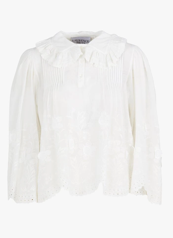 Soepelvallende, katoenen blouse met borduursel by Laurence Bras voor Dames.