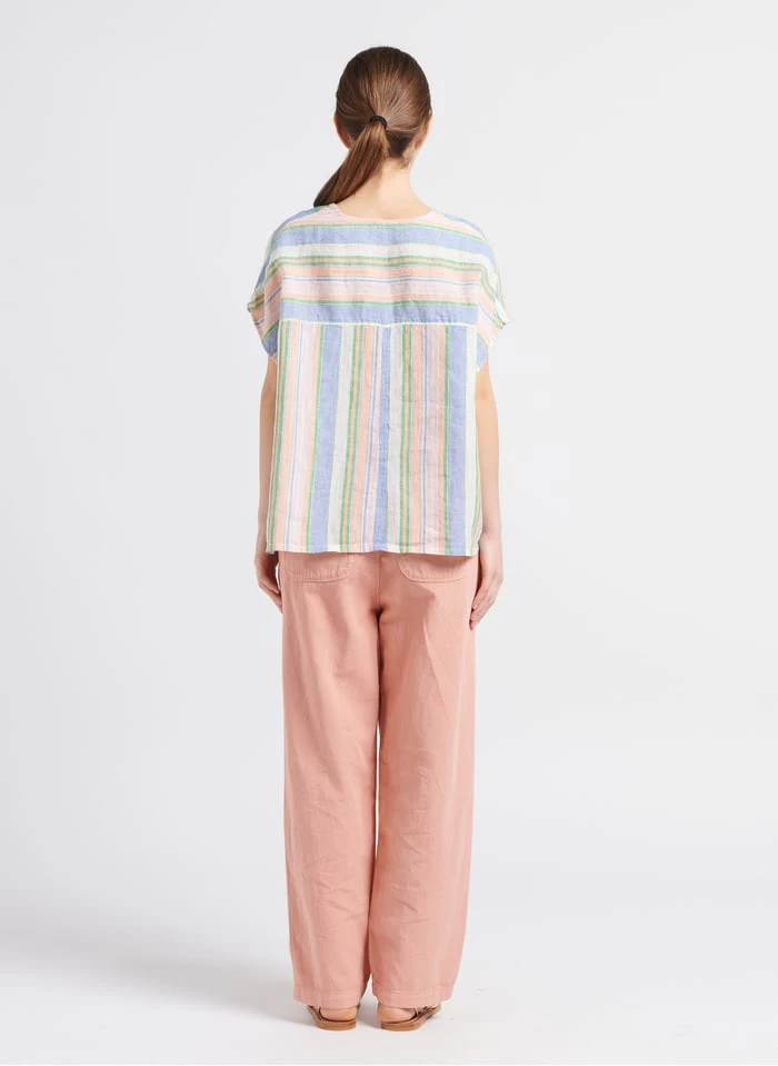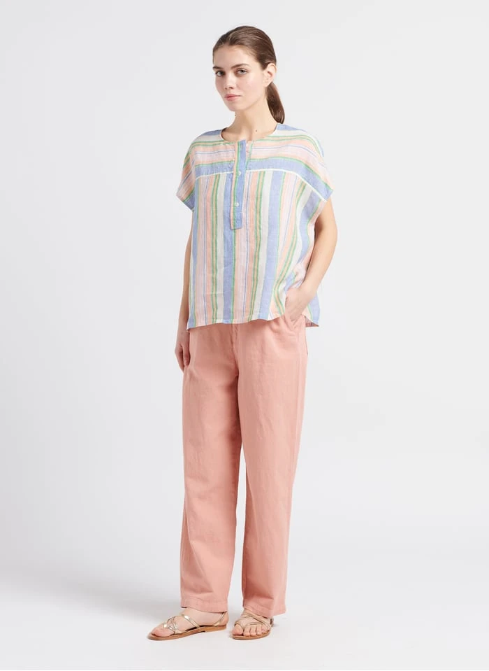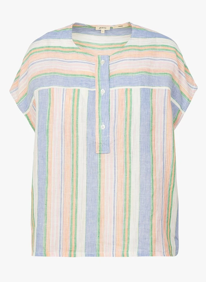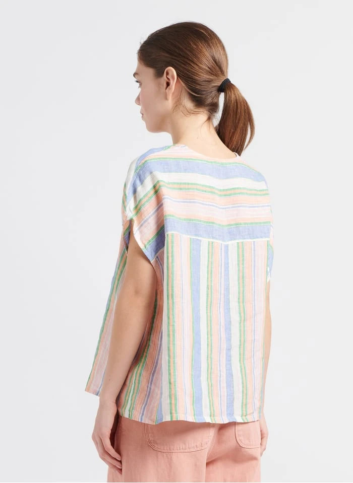 Gestreepte, linnen top met ronde hals by Bellerose voor Dames.