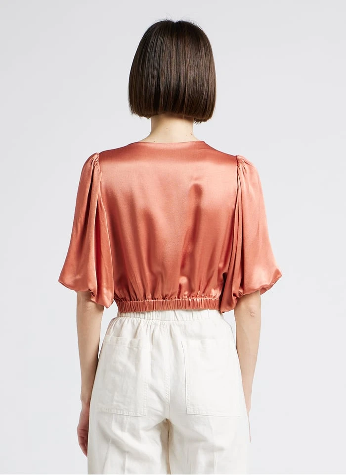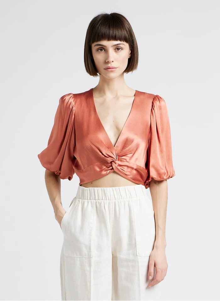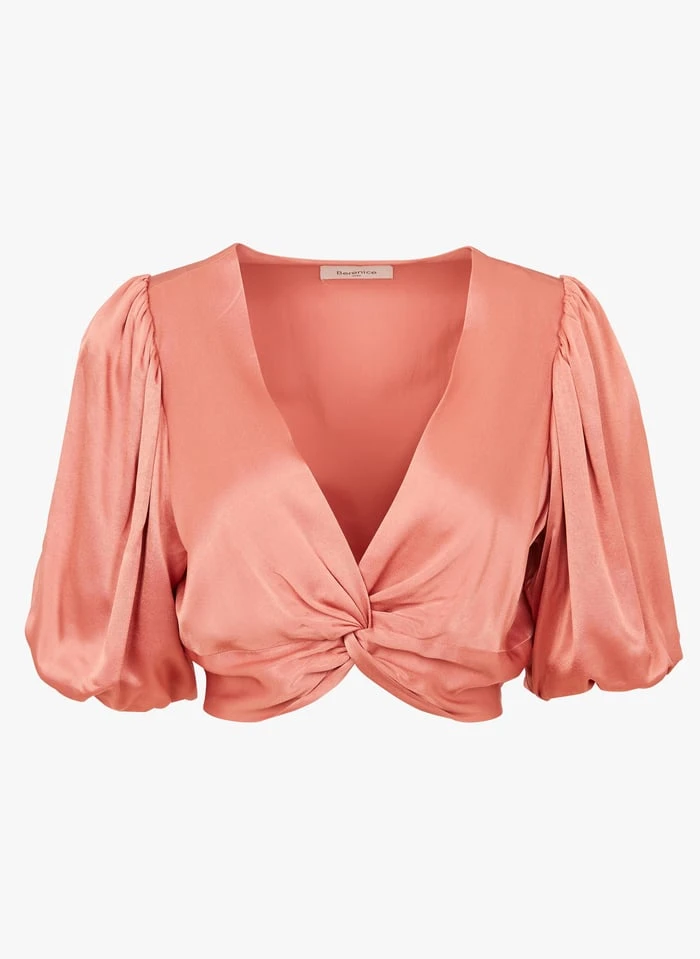Croptop met V-hals en satijnglans by Berenice voor Dames.