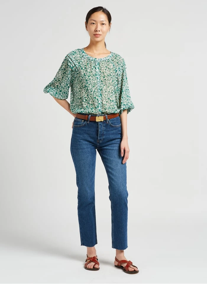 Soeur MADAGASCAR – Blouse Van Katoenpopeline Met V-hals | Groen