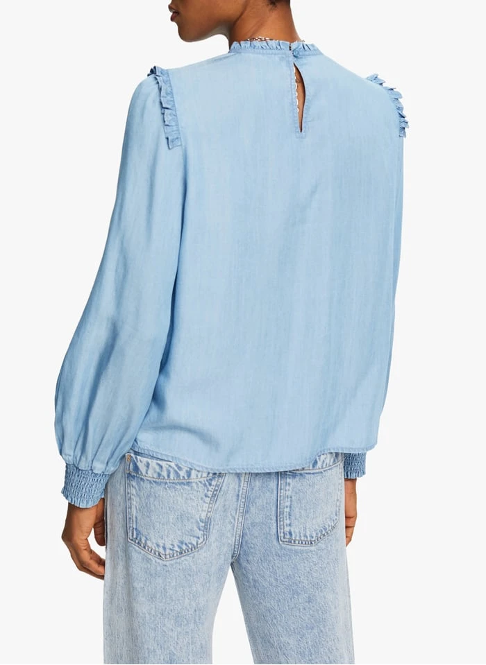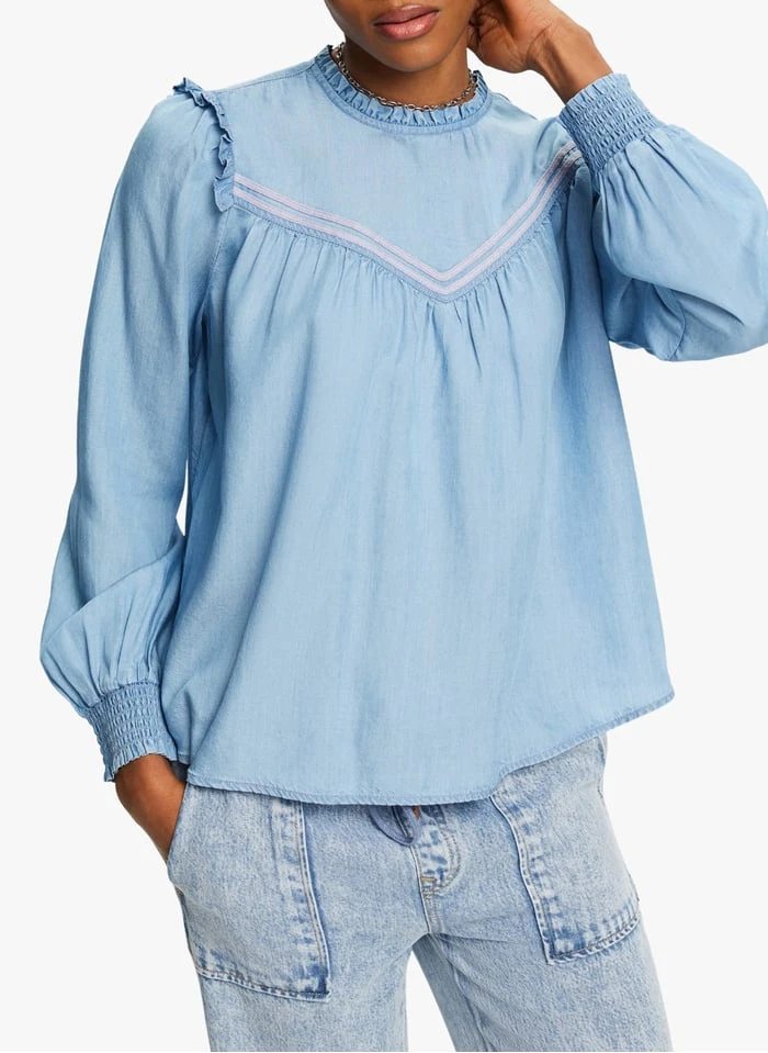 Katoenen top in jeansstijl by Esprit voor Dames.