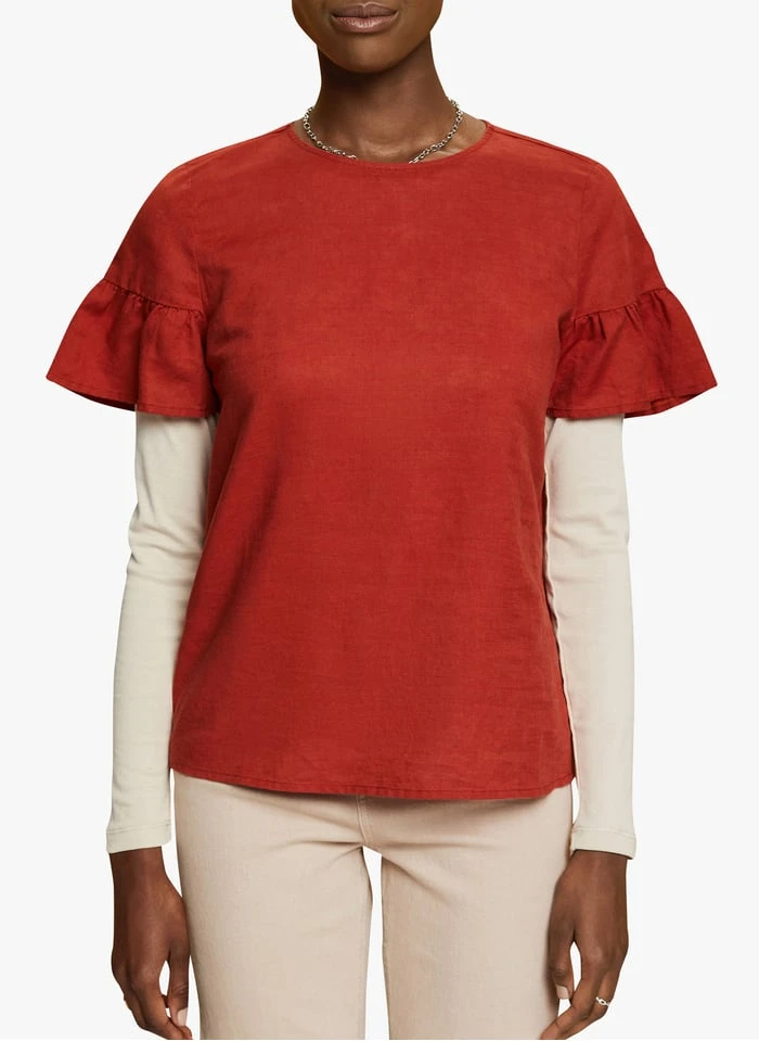 Top met ronde hals linnenblend by Esprit voor Dames.