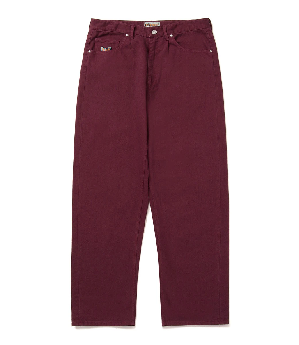 Deze broek van heavy-duty katoenen denim is versterkt op kritische naden en heeft een geborduurd HUF-logo op het muntzakje, een Cromer-label op de tailleband en een royale taps toelopende pijp.