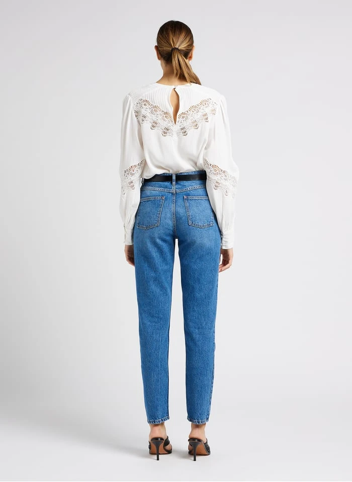 Dit model wordt aangeboden met Straight-fit jeans van katoenmix by IRO, Lamsleren sandalen met hak by BA & SH