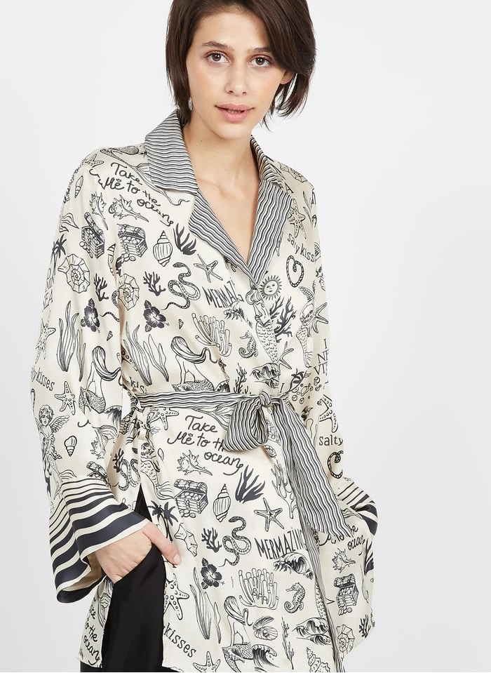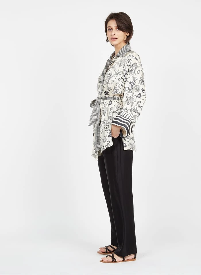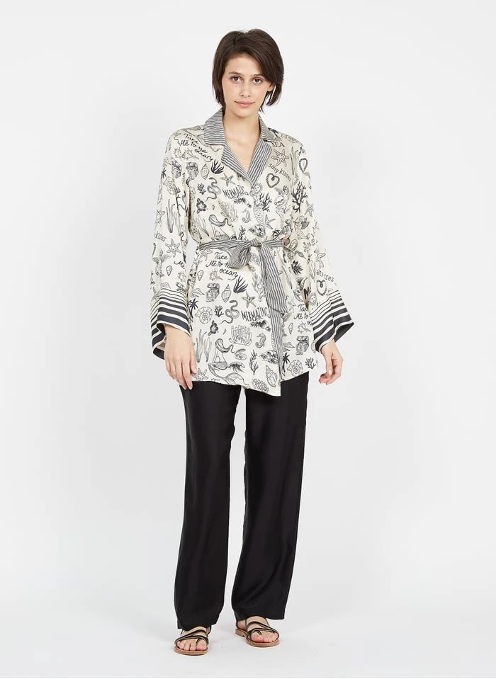 Dit model wordt aangeboden met Soepelvallende, effen broek met strikkoordje by SACK S