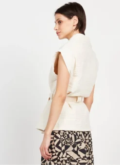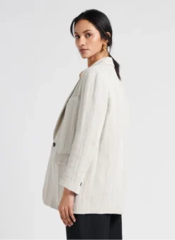 Jasje Met Reverskraag En Visgraatmotief, Linnen En Katoen | Grijs