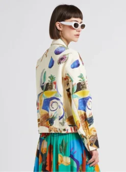 LE POTAGER – Kort Jasje Van Katoen- En Linnenmix Met Officierskraag En Print | Beige
