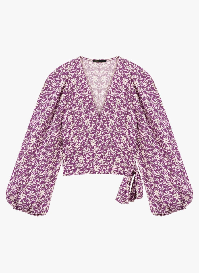 Top met V-hals en bloemenprint linnenblend by Maje voor Dames.