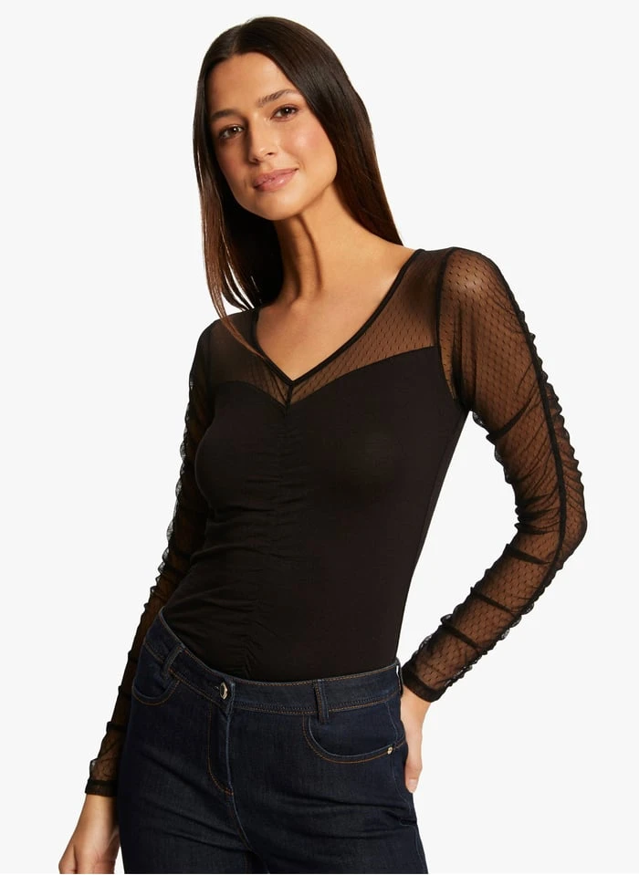 Top met V-hals van plumetis by Morgan voor Dames.