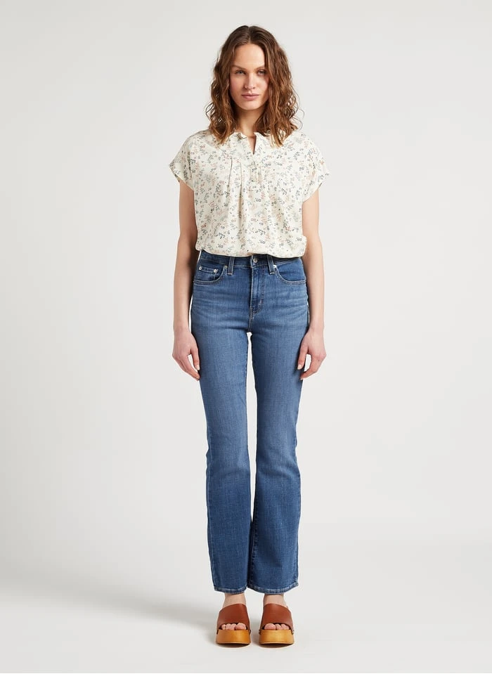 Dit model wordt aangeboden met Bootcut-jeans katoenblend by LEVI’S, Leren sandaaltje met hak by JONAK