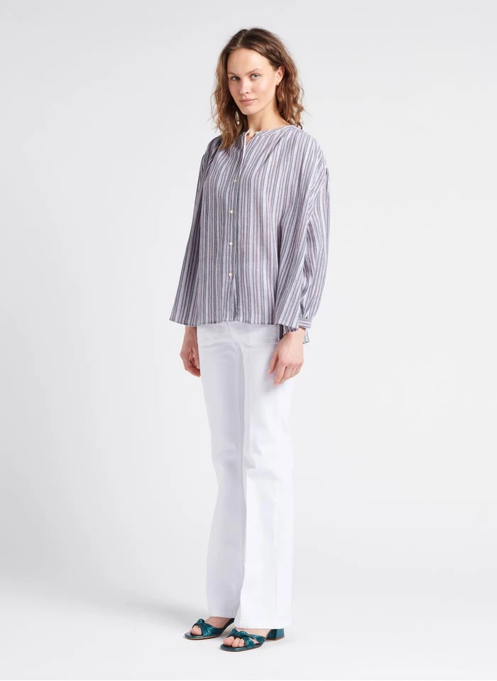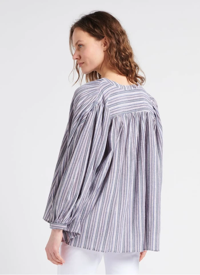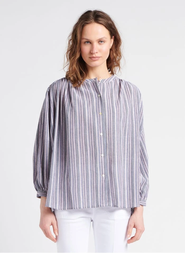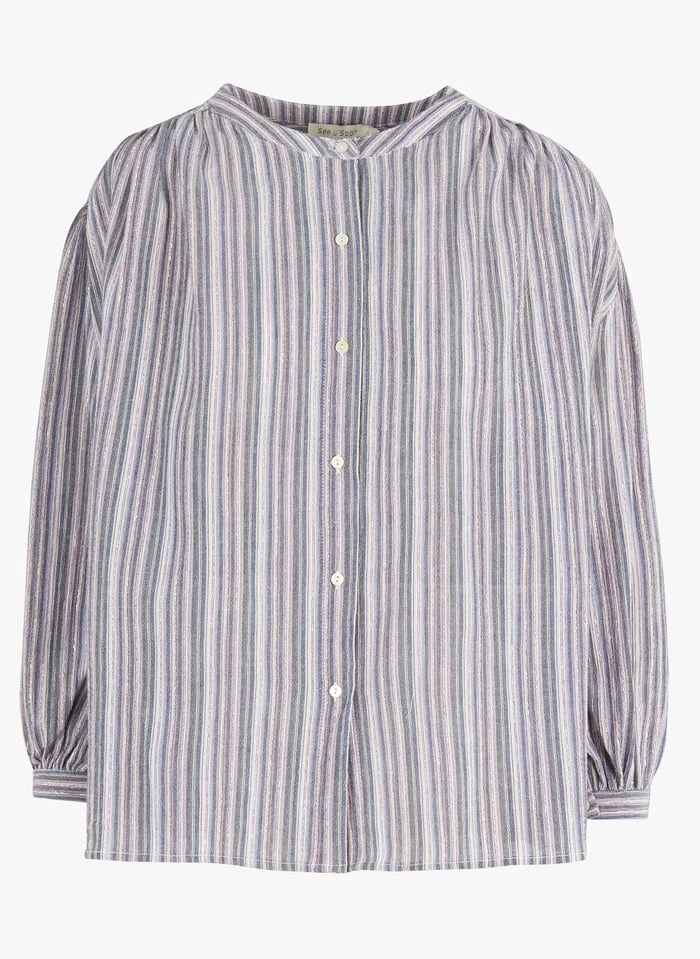 Gestreepte blouse van linnen en katoen met glansdraad by See U Soon voor Dames.