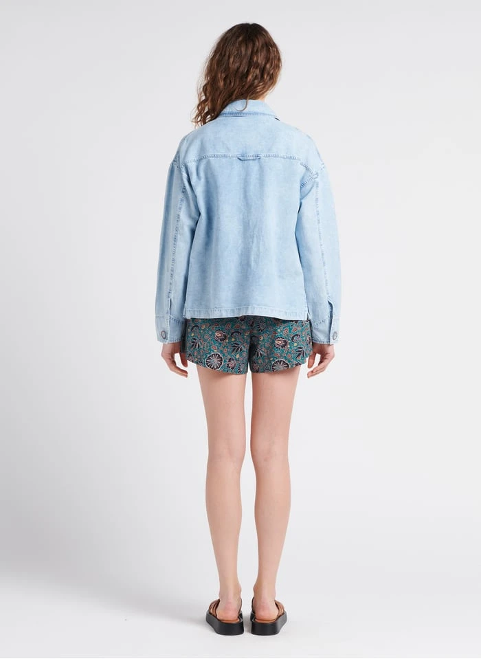 Dit model wordt aangeboden met Straight fit, katoenen short met print by SESSUN, Veelkleurige, gevlochten, leren ceintuur by SESSUN