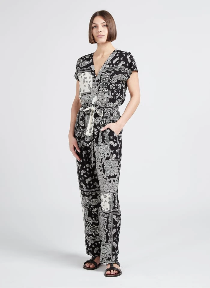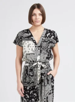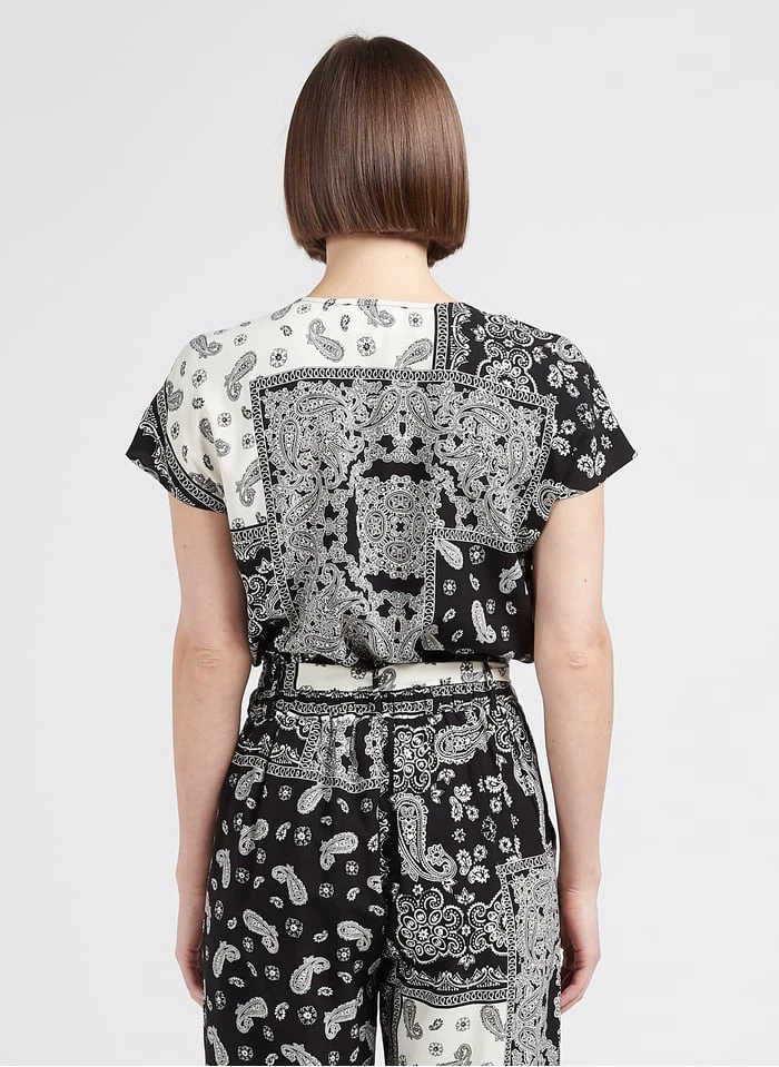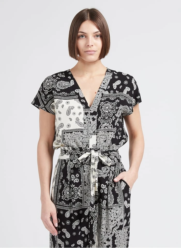 Dit model wordt aangeboden met Soepelvallende, rechte broek met paisleymotief by SUD EXPRESS