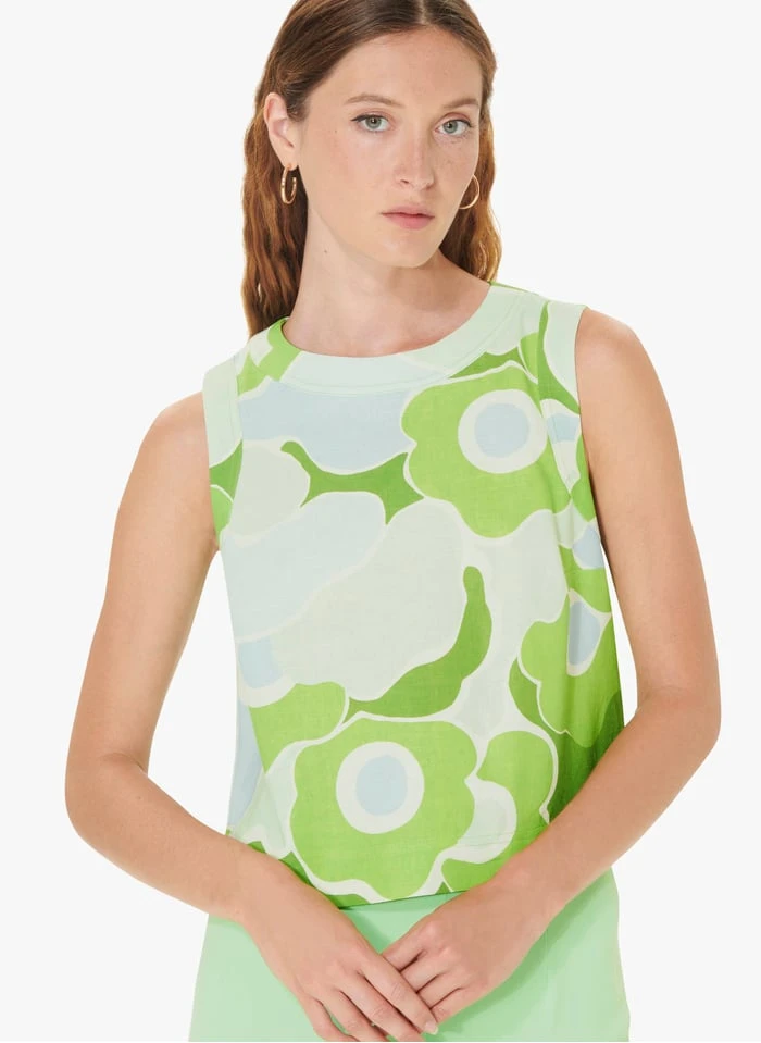 Top van linnenmix met ronde hals en print by Tara Jarmon voor Dames.