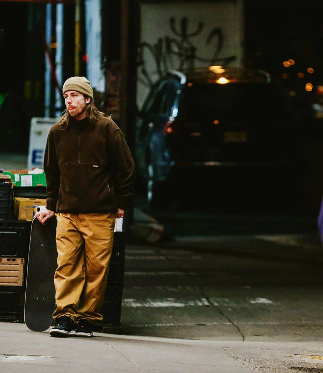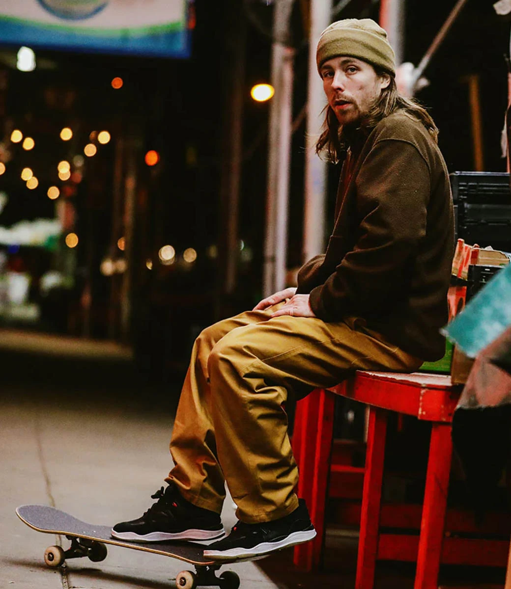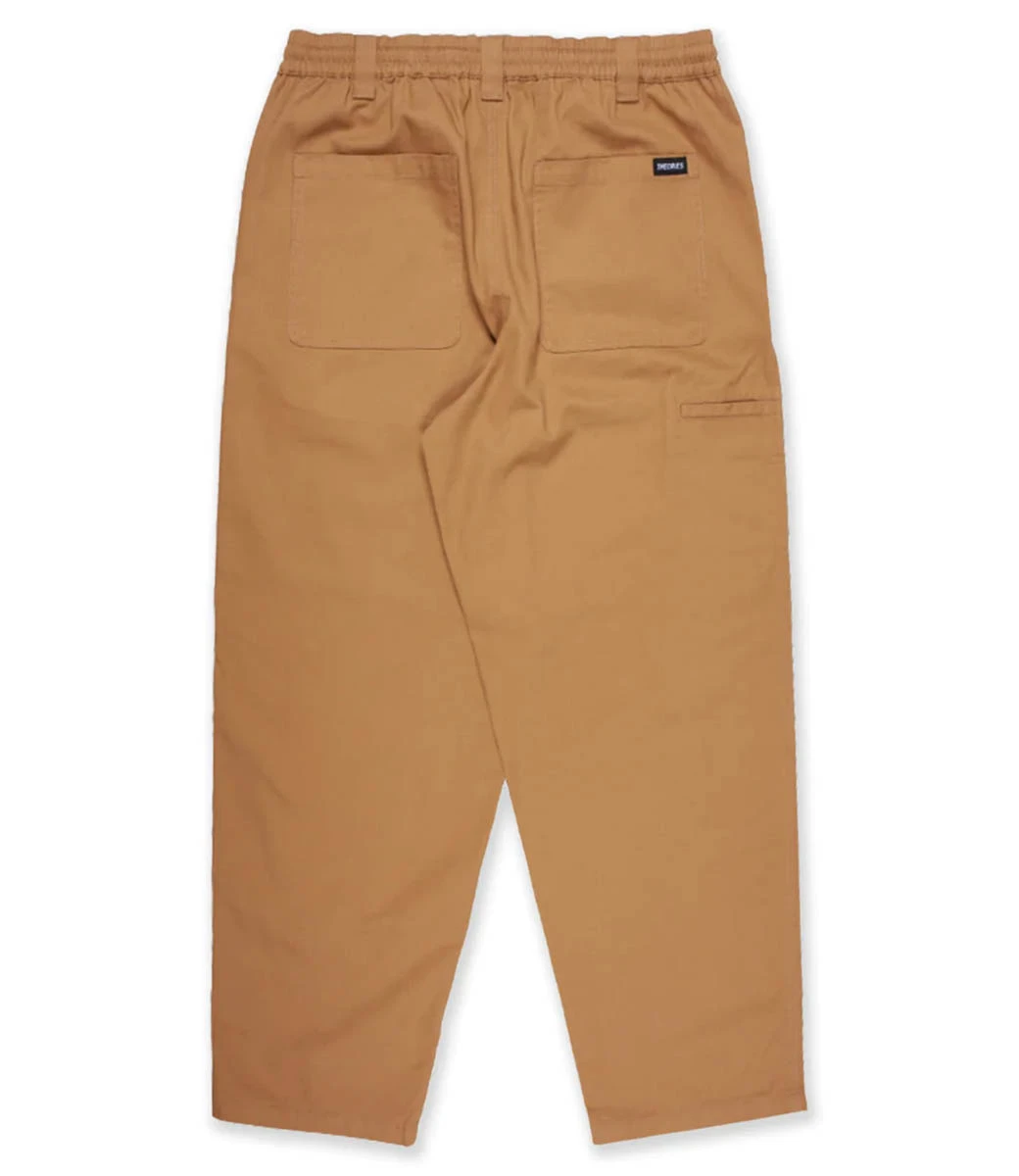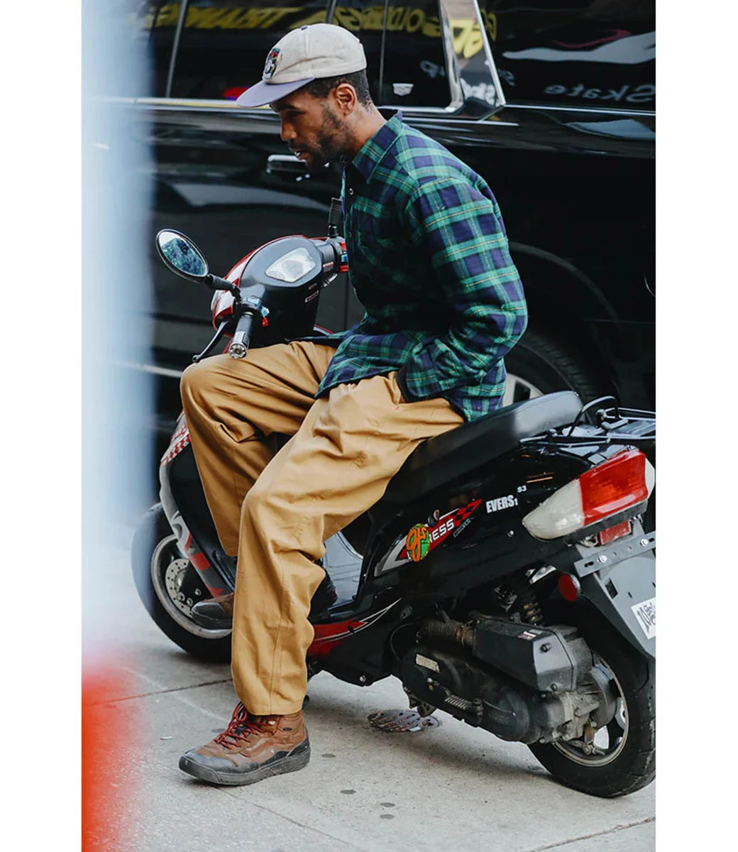 De Stamp Lounge Pant is sinds zijn debuut een vaste waarde in Theories. Dit is een comfortgerichte chino met een keperstof die zwaarder is dan de meeste loszittende broeken met elastische tailleband op de markt. Dit seizoen hebben we besloten om updates aan te brengen, zoals een vierkante steekzak die doet denken aan een timmermansbroek, en kleine treklipjes die je vaak op wandelbroeken vindt om de klittenbandsluitingen in geval van nood wendbaarder te maken.