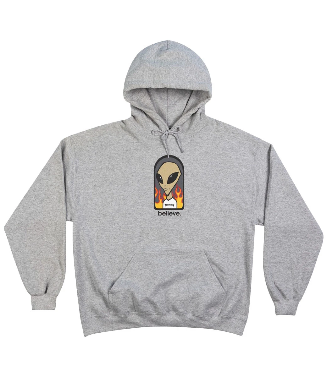 THRASHER Believe Hooded Sweat – Grey