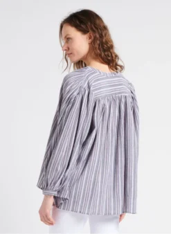 SEE U SOON Gestreepte Blouse Van Linnen En Katoen Met Glansdraad | Blauw