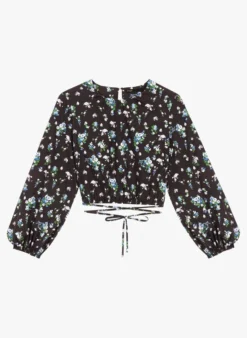 Maje LOVY – Top Van Katoenmix Met Ronde Hals En Bloemenprint | Blauw