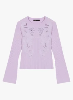 Maje MIMOSALIA – Trui Van Viscosemix Met Korte Mouwen | Violet