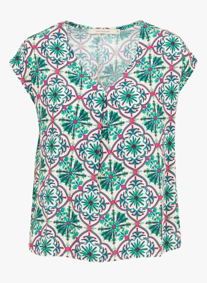 Top met V-hals en print by La Fée Maraboutée voor Dames.