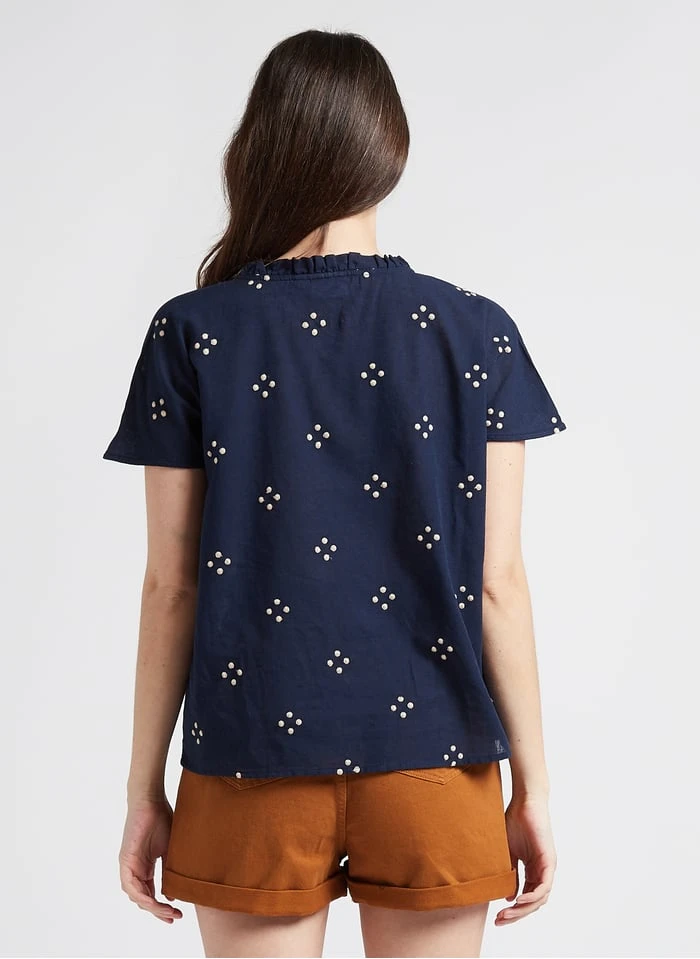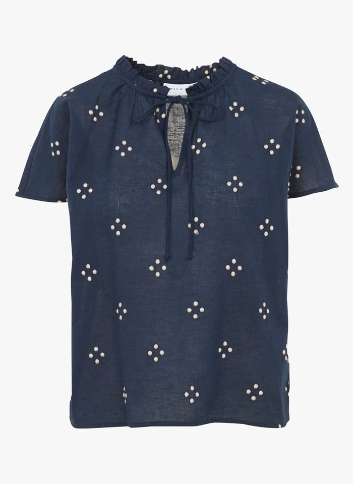Top met lange mouw, tuniekhals en stippenmotief katoenblend by Vila voor Dames.