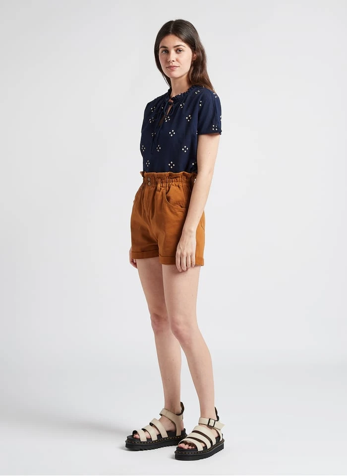 Dit model wordt aangeboden met Sandalen van gemengd leer met sleehak by DR. MARTENS, Recht, katoenen short by I CODE