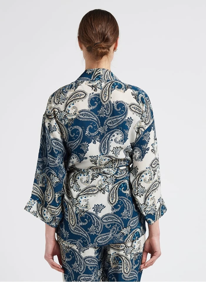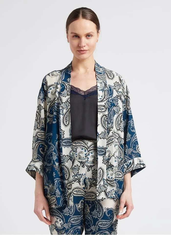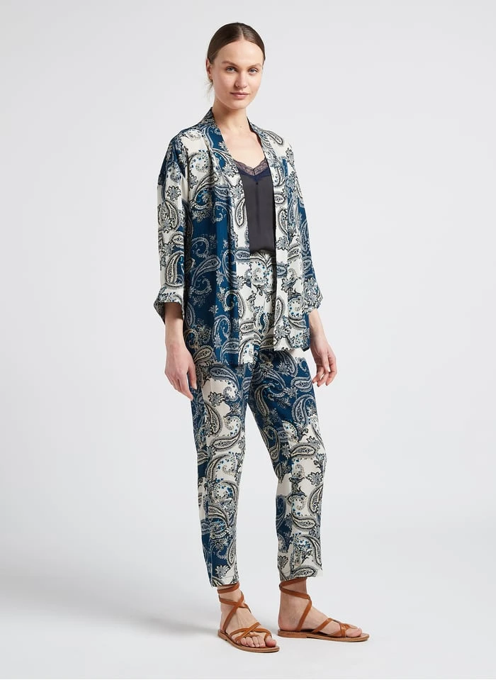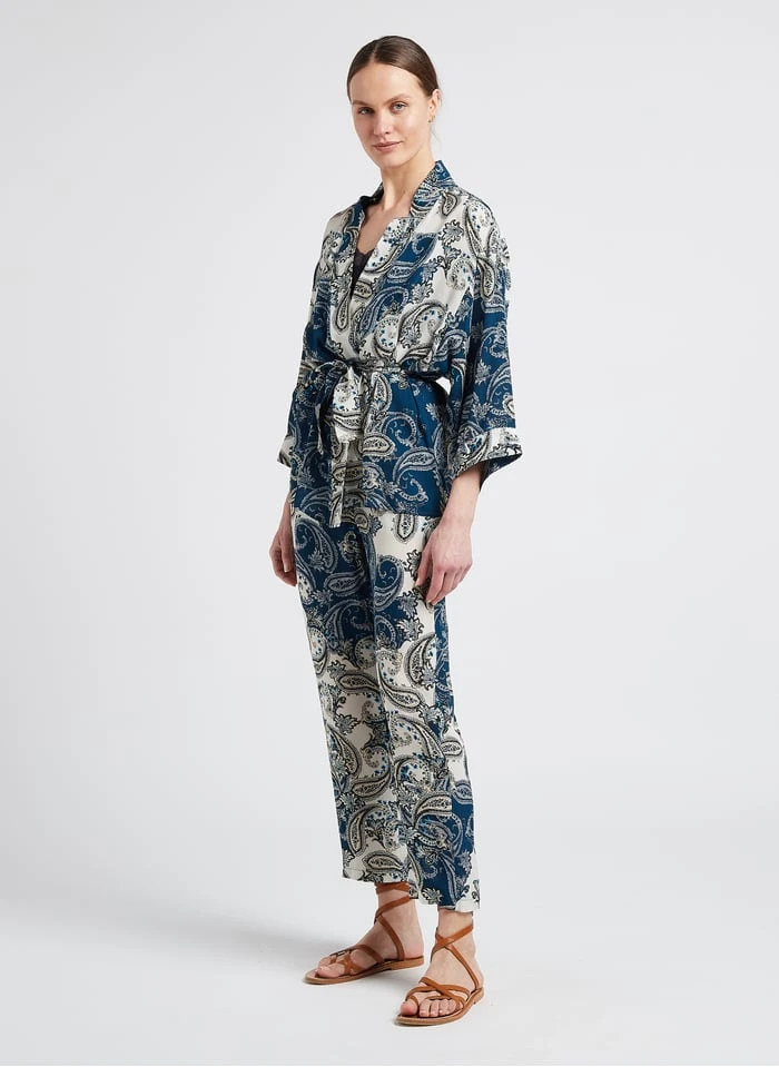 Dit model wordt aangeboden met Satijnachtig hemdje met kant by SEE U SOON, Wijde broek met print by PABLO